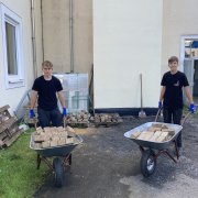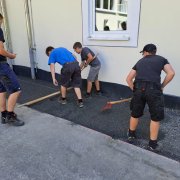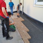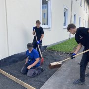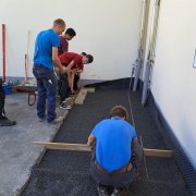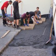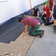 Der Schulhof der RSE wurde in den vergangenen Jahren durch verschiedene Maßnahmen und Projekte immer mehr aufgewertet und auf die Bedürfnisse der Schülerinnen und Schüler ausgerichtet. Sei es beim Bau des Kletterseilgartens vor einigen Jahren, dem Neubau des Fahrradschuppens oder beim Aufbau der neuen Sonnensegel, die Bau AG war immer dabei. So auch dieses Mal. Da die zur Verfügung stehende Fläche für zwei neue Tischtennisplatten zu schmal war, musste ein Teil der angrenzenden Rasenfläche gepflastert werden. Dies realisierte in den vergangenen Wochen die Bau AG unter Anleitung der Fa. Berge Bau. Gemeinsam führten Harald Dörnbach als Lehrlingswart und Moritz Eigner (Dualer Student) die Jungs in die Geheimnisse des Pflasterns ein. Jedoch stellten alle Beteiligten schnell fest, dass bereits einiges an Vorwissen und Vorerfahrungen von den Schülern mitgebracht wurde. In zwei nachmittäglichen Etappen wurde die Fläche gepflastert und nun steht dem Aufbau der neuen Tischtennisplatten nichts im Weg. Diesen Aufbau übernimmt freundlicherweise der Bauhof der Gemeinde Erndtebrück. Vielen Dank dafür bereits im Voraus! Ebenfalls vielen Dank an die Jungs der Bau AG für ihren freiwilligen Einsatz für ihre Schule. Und nicht zu vergessen auch einen herzlichen Dank an die Fa. Berge Bau für die gute Kooperation und die praktische Berufsorientierung vor Ort.