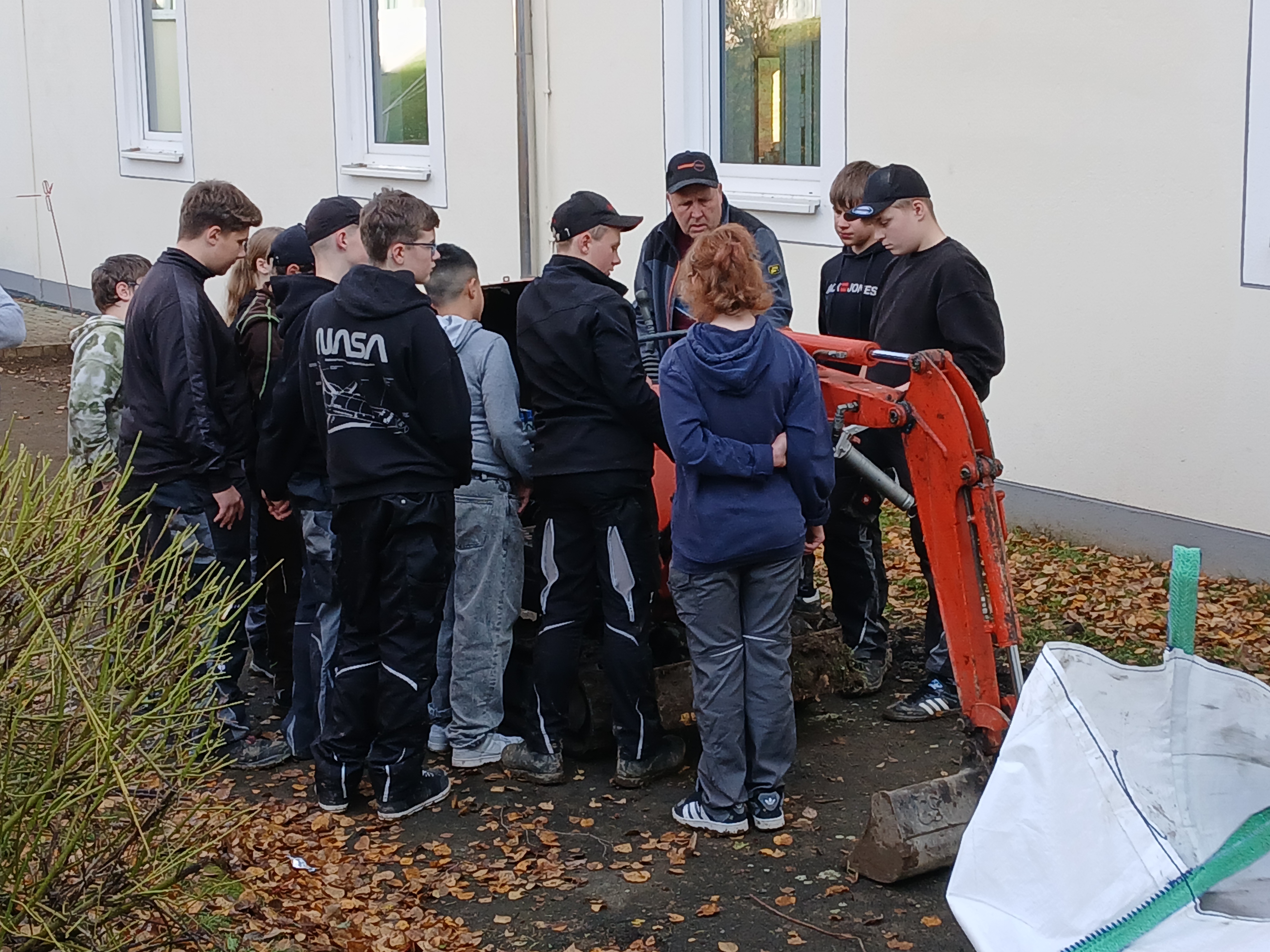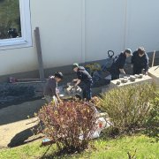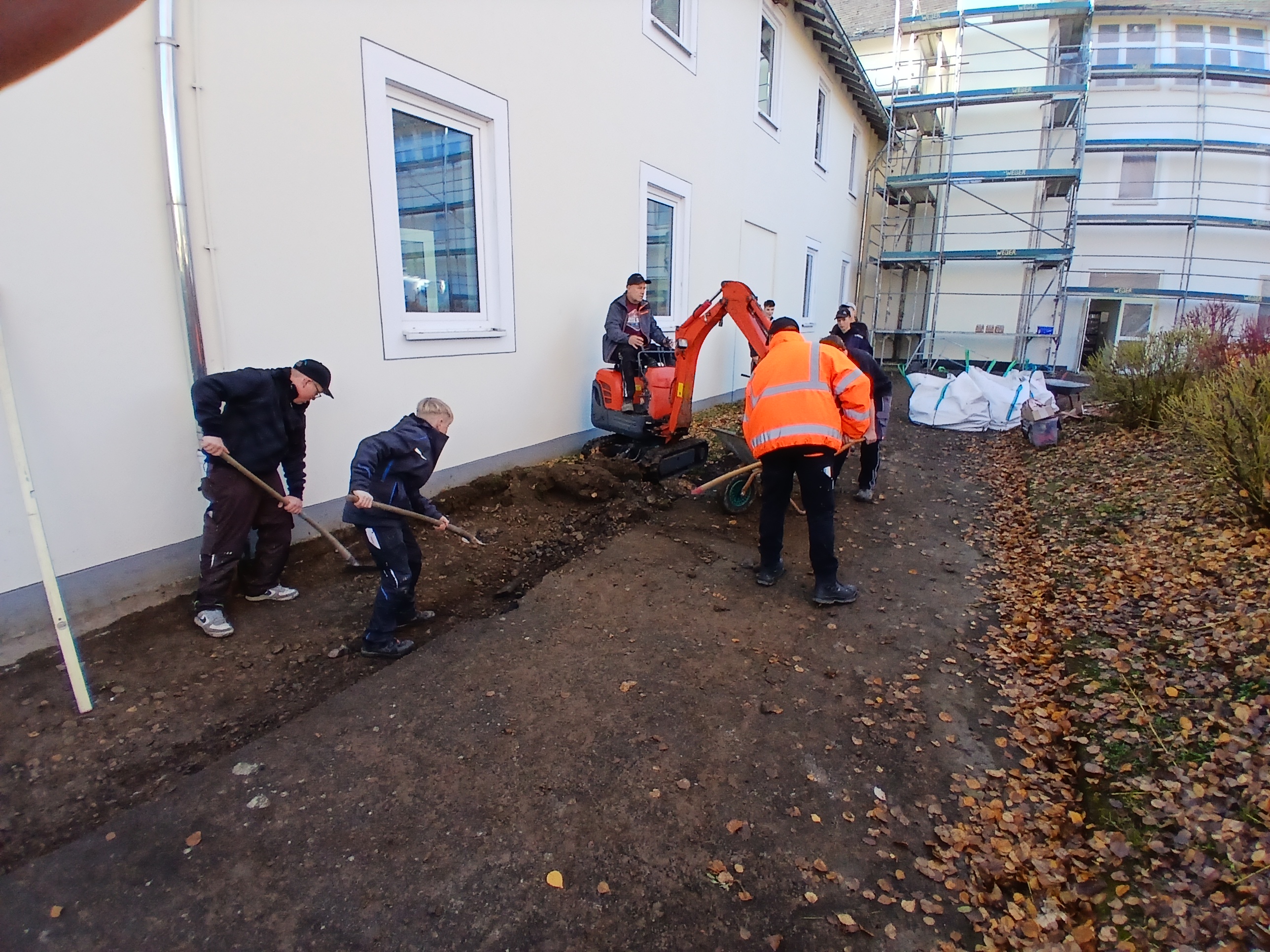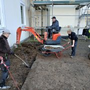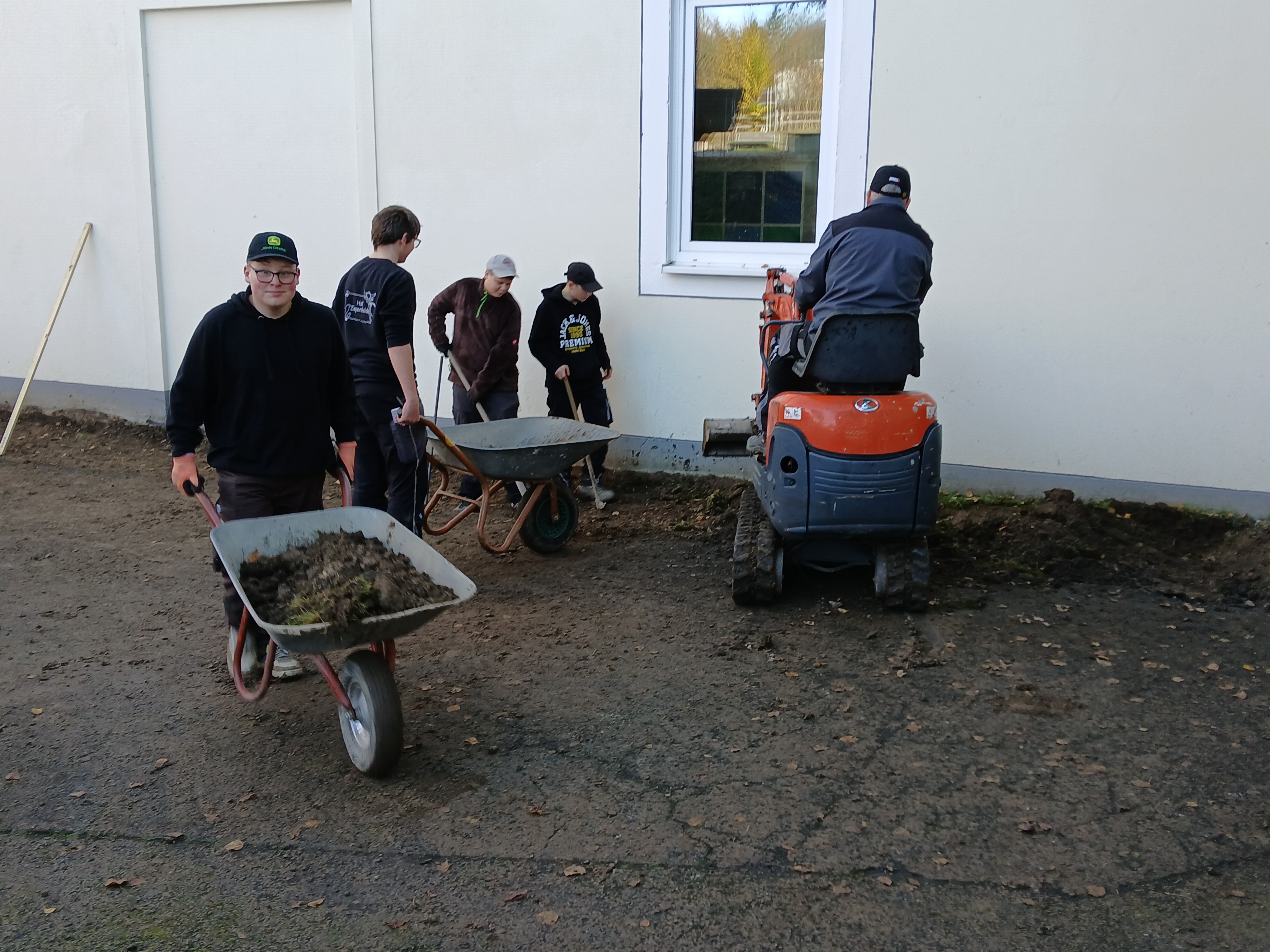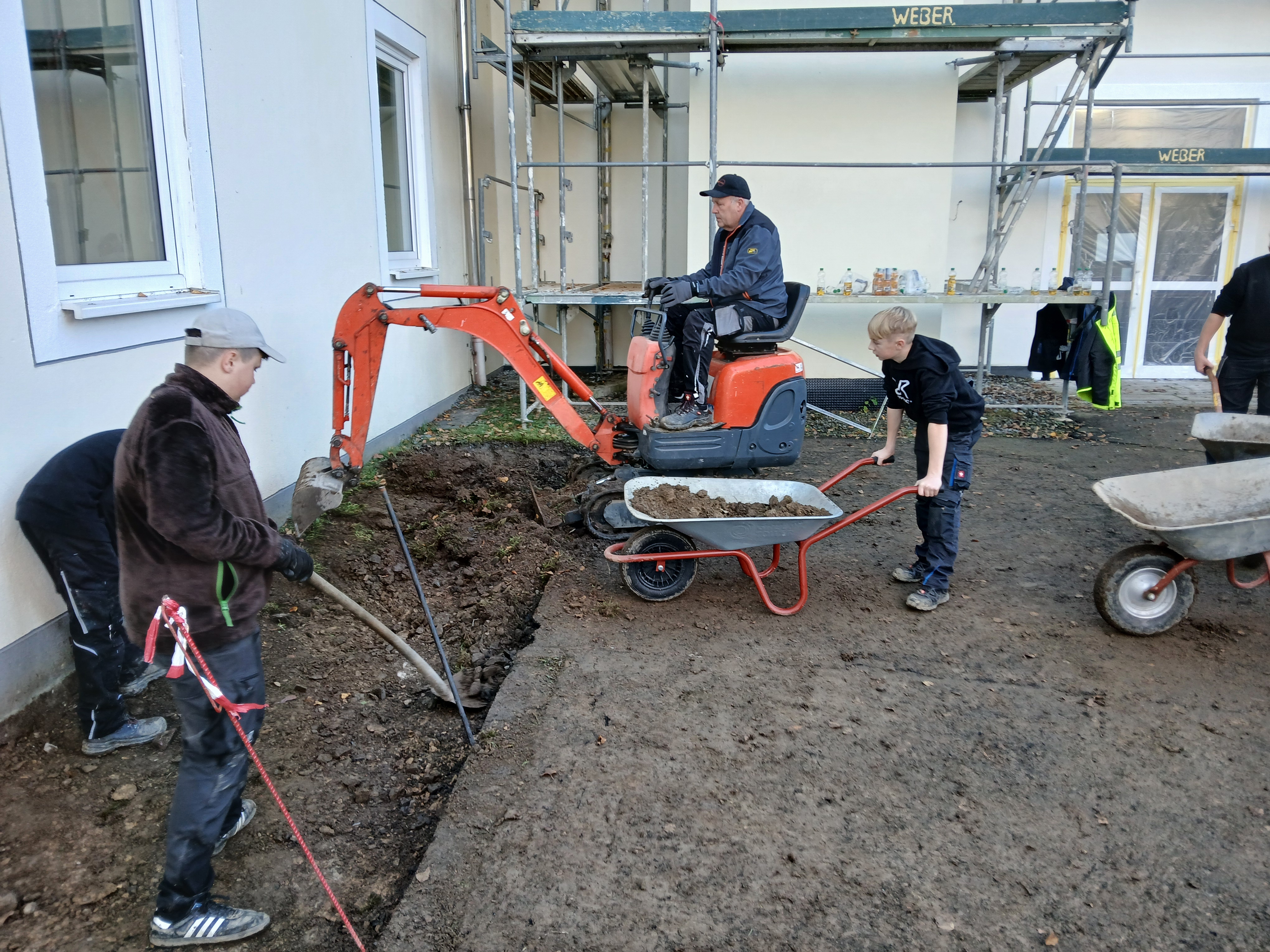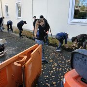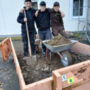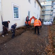 Gemeinsam mit der Firma Berge Bau wurden Pflasterarbeiten hinter den Tischtennisplatten umgesetzt. Ziel war die Erweiterung und Aufwertung der dortigen Flächen – ein Projekt, das von der Planung bis zur Ausführung in den Händen der Bau-AG lag. Unterstützt wurden die Jugendlichen dabei fachkundig von Moritz Eigner von Berge Bau sowie vom Techniklehrer und Bau AG-Leiter Jörg Hassel.