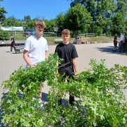 In jedem Schuljahr, immer gegen Ende April bzw. Anfang Mai, arbeiten alle Klassen einen Tag lang an einem ausgewählten Projekt. An diesem Tag, nämlich „Unserem gemeinsamen Tag für die Schule“ räumen die Schülerinnen und Schüler die Schule auf, streichen die Wände neu, sammeln Müll rund um die Schule, richten die Blumenbeete wieder her und reinigen Böschungen und Grünflächen. Diese Aufgaben suchen sich die Klassen gemeinsam mit ihren Klassenleitungen aus und organisieren mit tatkräftiger Unterstützung unseres Hausmeisters und des Bauhofs der Gemeinde alle dafür notwendigen Werkzeuge und Materialien. Die Schülerinnen und Schüler gestalten also aktiv ihre eigene Schulumgebung.